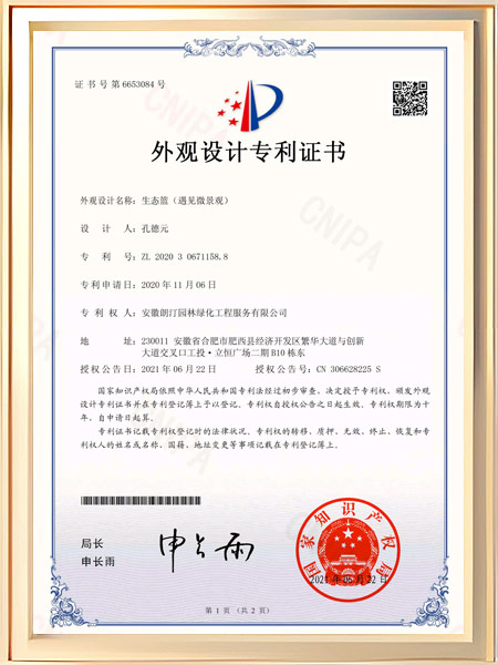 生态筐(遇到微景观)专利证书